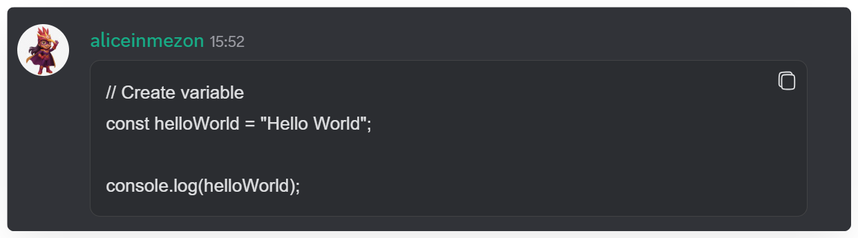 Use triple backticks (```) to create multi-line code blocks for longer snippets.