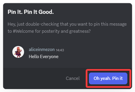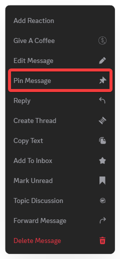 - In a Text Channel or Thread, press and hold the message you want to pin.