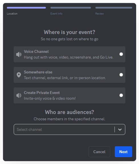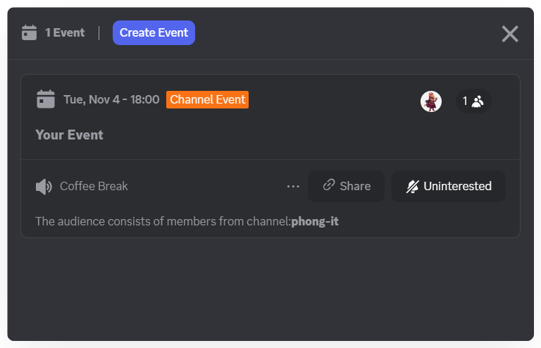 - Each channel can host its own event, keeping discussions or group activities organized without cluttering the general space.