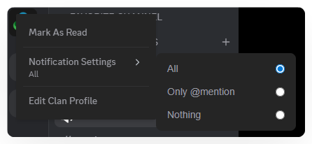 Additionally, you can manage detailed notification settings for each Channel within a Clan by clicking the Clan name and selecting Notification Settings.