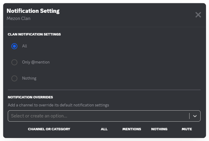 - @everyone and @here: Mute notifications when the entire Clan is pinged.