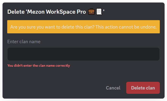 This action cannot be undone. All data, channels, and content within the Clan will be permanently removed.