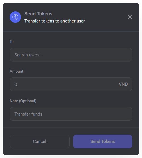 - Amount: specify the number of tokens (shown in VND).