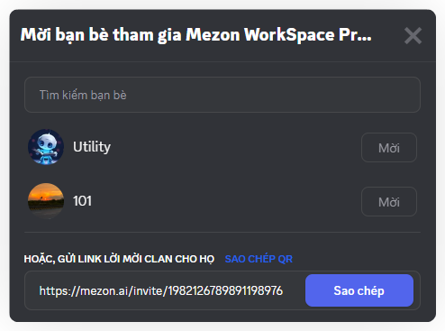 - Sao chép liên kết mời: gửi liên kết mời đến bạn bè qua tin nhắn, email hoặc bất kỳ nền tảng nào khác.