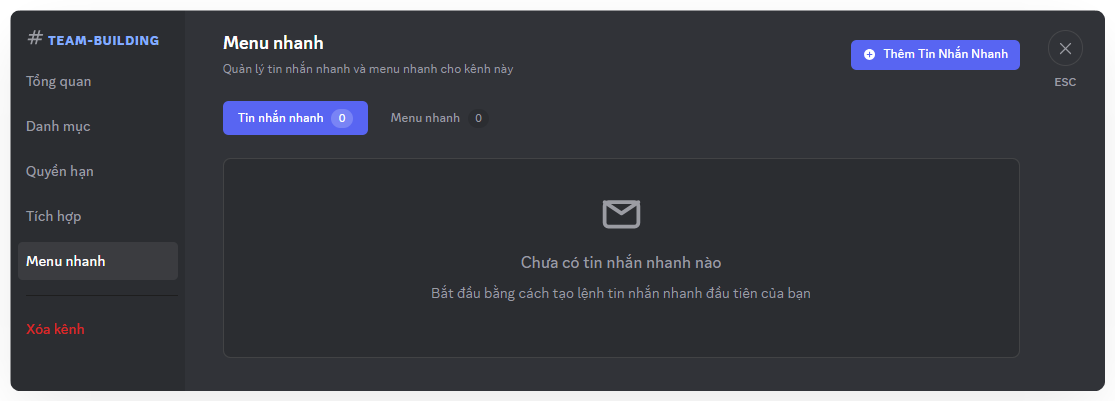 Phần cài đặt Menu nhanh chỉ có ở Kênh văn bản.