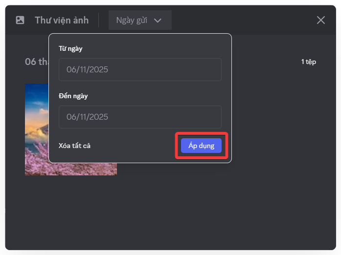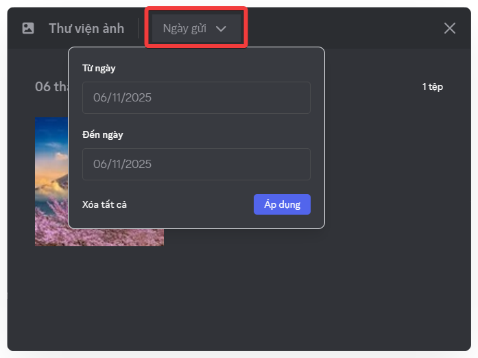 Chọn Ngày gửi để lọc theo ngày gửi ảnh.