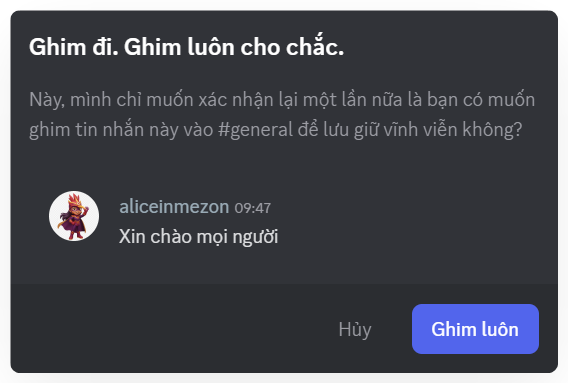 Chọn Ghim tin nhắn, xác nhận lại và nhấn “Ghim luôn”.
