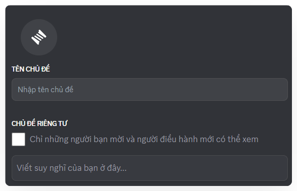 Nếu muốn Chủ đề riêng tư chỉ có những người được mời và người quản lí mới xem và thảo luận được, hãy chọn "Chủ đề riêng tư" phía dưới.
