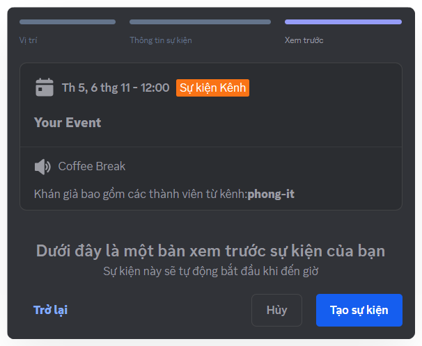 Kiểm tra lại nội dung của Sự kiện và nhấn Tạo sự kiện