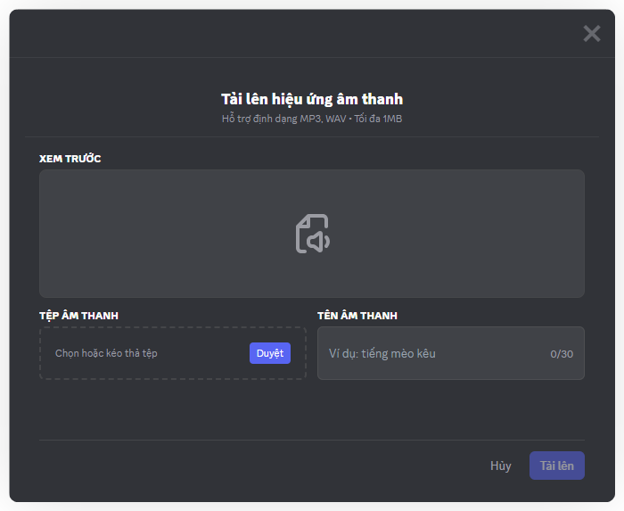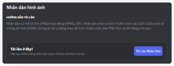 Nhấn Tải lên biểu tượng cảm xúc/ Tải lên nhãn dán hình ảnh/ Tải lên nhãn dán âm thanh