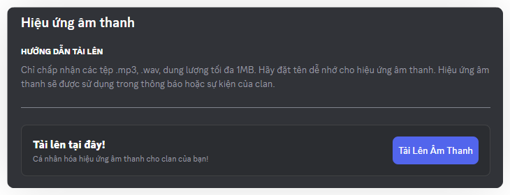 - Tối đa có thể tải lên 250 Nhãn dán âm thanh mỗi Clan