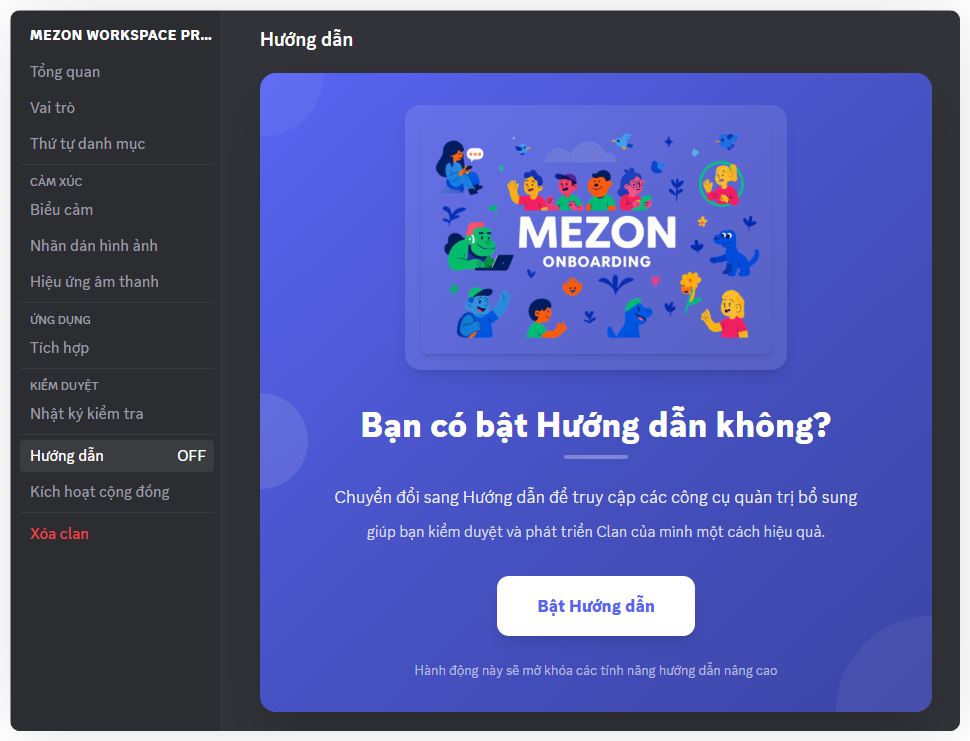 Tại đây, bạn sẽ thấy một màn hình giới thiệu về Onboarding. Nhấp vào nút Bật hướng dẫn để kích hoạt tính năng này.