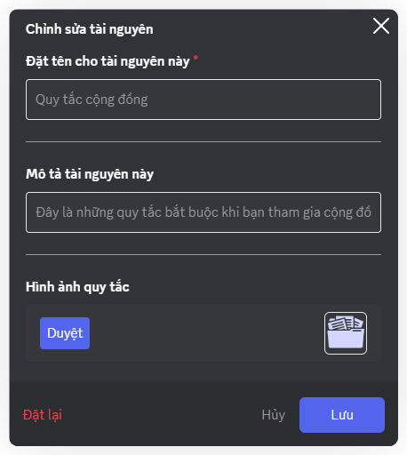 - Rules Image: Tải lên hình ảnh minh họa bằng cách nhấp "Duyệt".